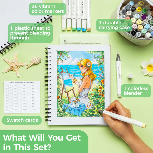 Ohuhu Honolulu Plus – סט 36 מרקרים עם קצה Supreme Brush פרימיום | מברשת גומי גמישה + קצה חרוט