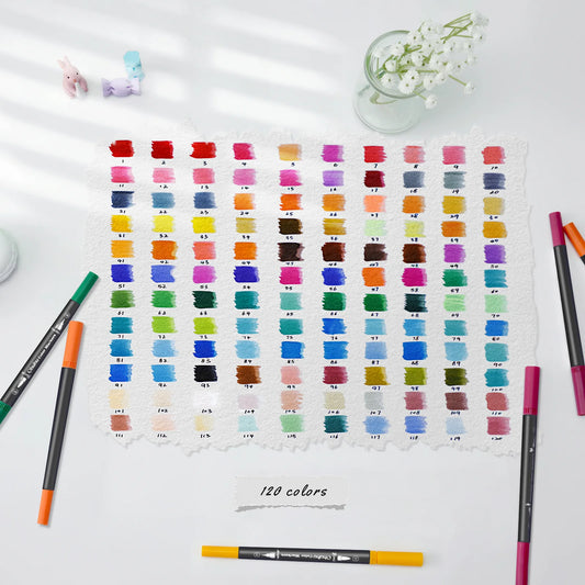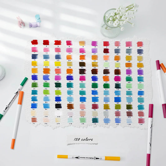 • סט מרקרים דו-קצוות Ohuhu Maui – 120 צבעים עשירים | קצה מברשת וקצה דק לציור וקליגרפיה