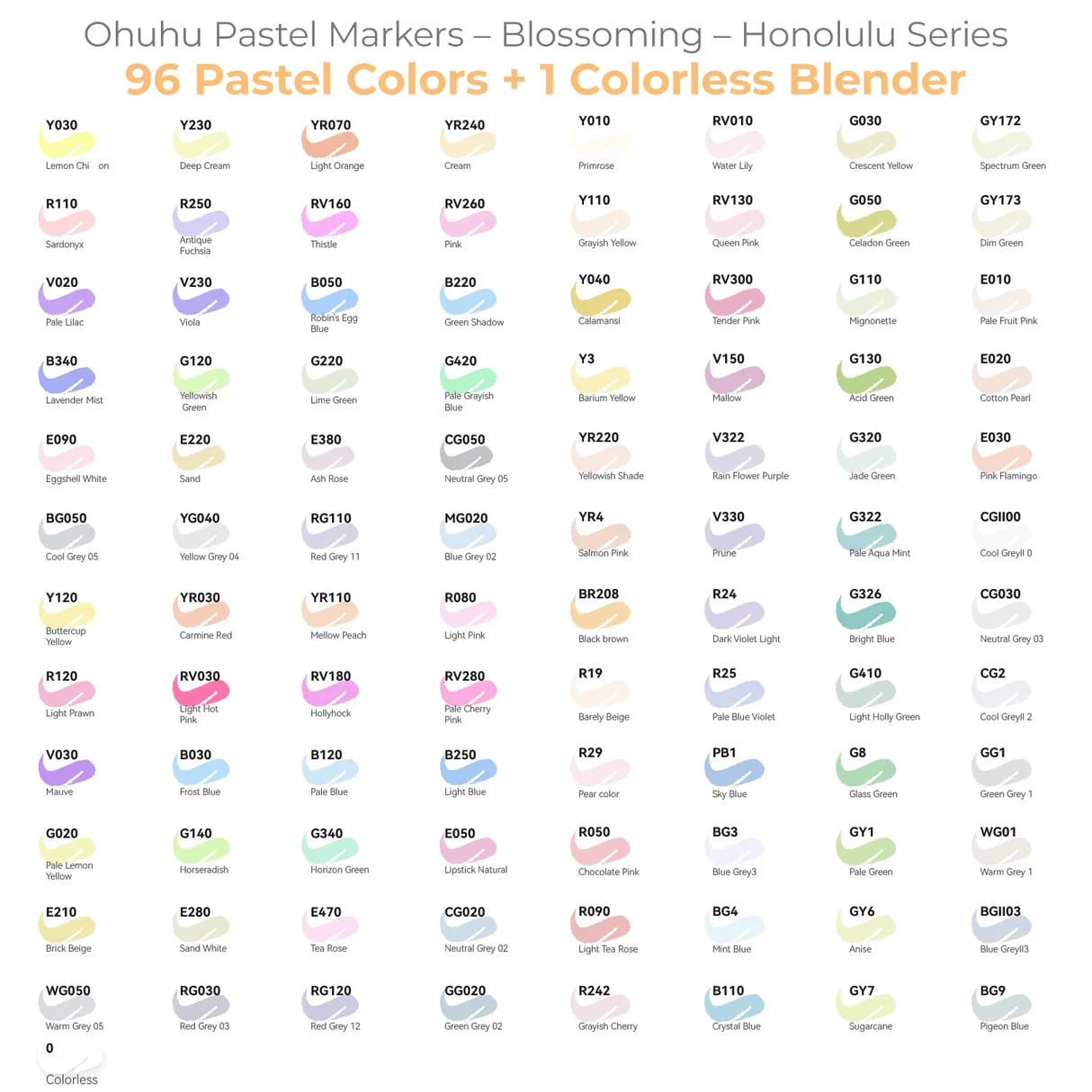 Ohuhu Honolulu 96 Pastel Colors Alcohol Art Markers - Sweetness & Blossoming